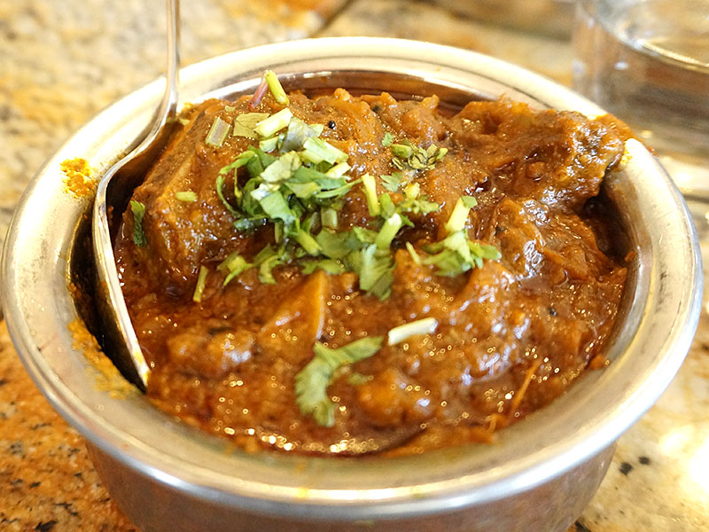 Bawarchi: Gongura Mutton Curry Published September 2, 2014, 22:15 at 800 × 600 in Bawarchi (Plymouth, Minnesota) ← Previous Next → I was looking forward to this Gongura Mutton and I thought it was fine. Gongura is a sour green in the sorrel family but it seemed to me that the sourness in this dish derived more from tamarind.