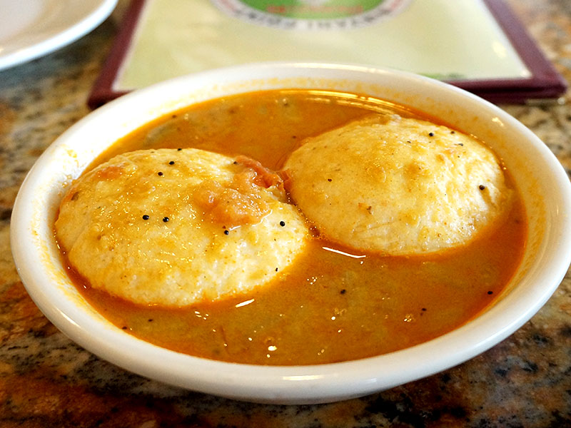 Bawarchi: Idli Sambhar Published September 2, 2014, 22:16 at 800 × 600 in Bawarchi (Plymouth, Minnesota) ← Previous Next → We started off with the Idli Sambhar. The idlis were fine, the sambhar and the chutneys were blah.