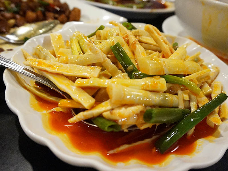 Grand Szechuan: Bamboo Shoots in Chili Sauce Published December 23, 2014, 0:24 at 800 × 600 in Grand Szechuan Yet Again ← Previous Next → These bamboo shoots are a cold appetizer, and despite the chilli oil they’re sitting in the coolness makes them a nice relief from hotter dishes.