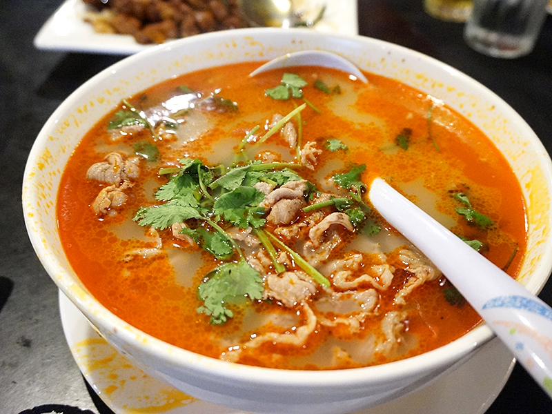 Grand Szechuan: Lamb in Spicy Soup Published December 23, 2014, 0:26 at 800 × 600 in Grand Szechuan Yet Again ← Previous Next → Less mild but just as good is this “Lamb in Spicy Soup”. Thinly sliced lamb in a (not terribly) spicy and tangy/sour broth.