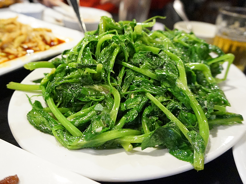 Grand Szechuan: Stir Fried Pea Tips Published December 23, 2014, 0:28 at 800 × 600 in Grand Szechuan Yet Again ← Previous Next → It’s good to cut the heaviness of pork belly with some greens, and these stir-fried pea tips are a good match.