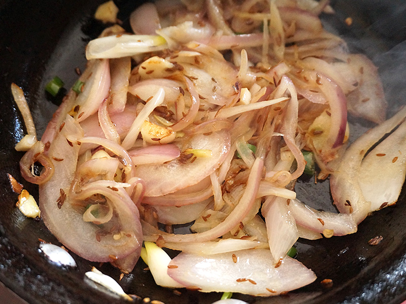 Tadka Published January 19, 2015, 10:19 at 800 × 600 in Mushoor Dal, Bengali Style (Indian Home Cooking Week 2) ← Previous Next → Then add the onion, garlic and chillies and saute till this point.