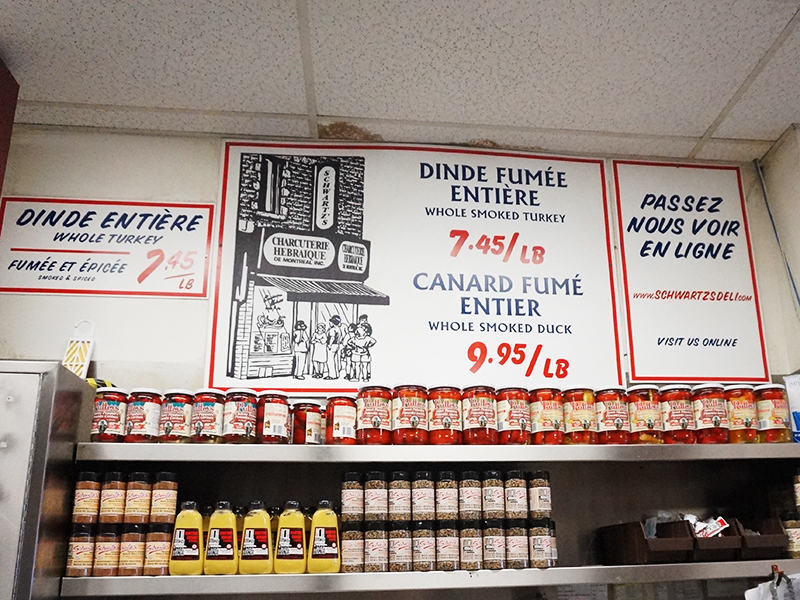 wall Published March 28, 2015, 20:13 at 800 × 600 in Schwartz’s (Montreal) ← Previous Next → I was very tempted to get a whole smoked duck to go.