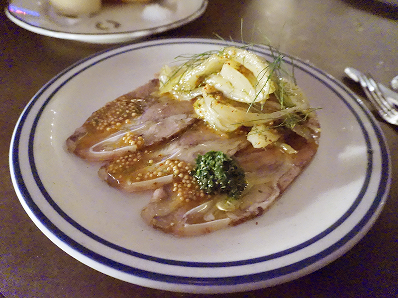 Joe Beef: Hure de Cochon Published March 30, 2015, 8:53 at 800 × 600 in Joe Beef (Montreal) ← Previous Call it head cheese. Done with soppresatta spices with pickled whole grain mustard and fennel. This was my favourite thing on the night.