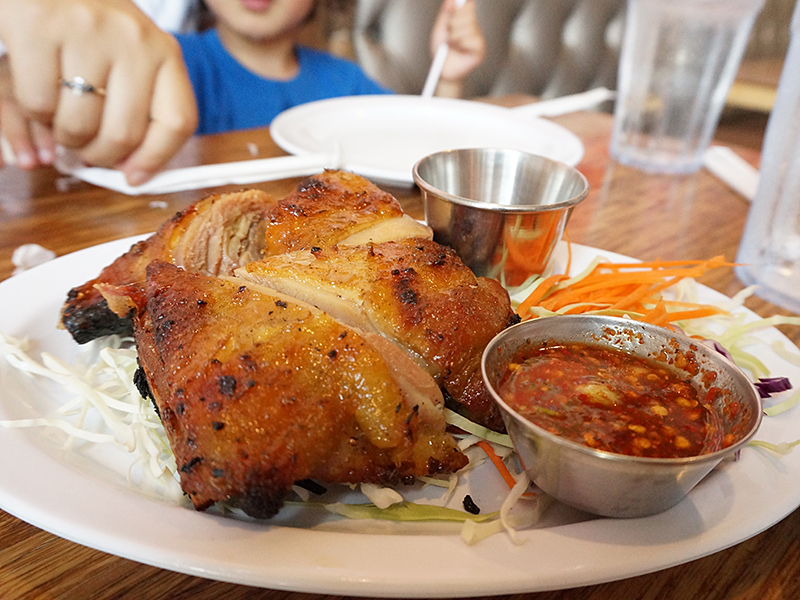 Isaan Station: Khai Yang Ob Oong Published July 29, 2015, 1:20 at 800 × 600 in Isaan Station Again (Los Angeles, July 2015) ← Previous Next → Fortunately, the turmeric-marinated grilled chicken is entirely mild (unless you involve the sauce) and so the top of our heads did not entirely come off.
