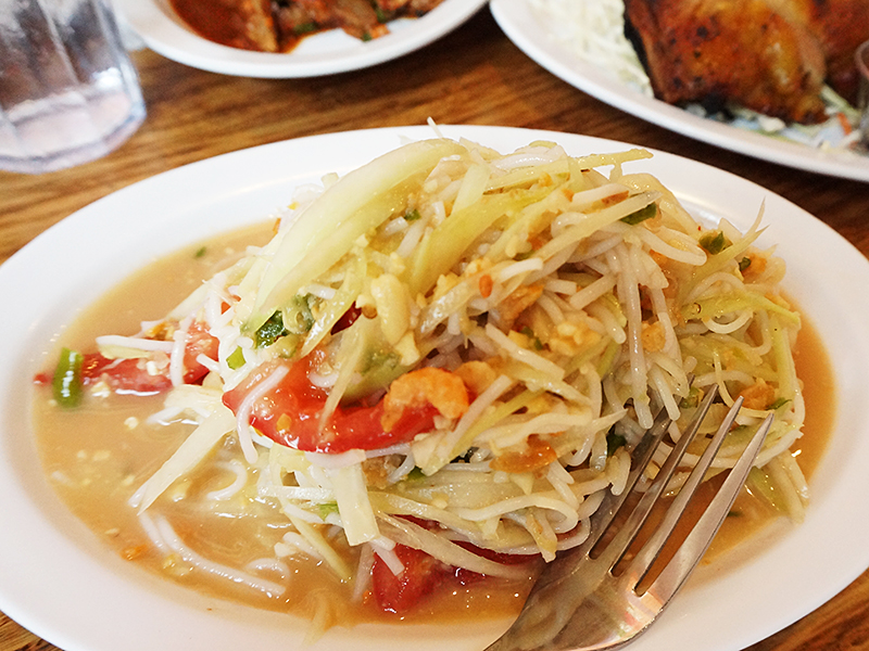 Isaan Station: Dtum Sua Published July 29, 2015, 1:23 at 800 × 600 in Isaan Station Again (Los Angeles, July 2015) ← Previous This Isaan style papaya salad with rice noodle was the first thing we asked for to be Thai hot and the waitress warned us that it would be very hot. Well, it was quite hot (and also very good) but it was almost a relief dish alongside the…