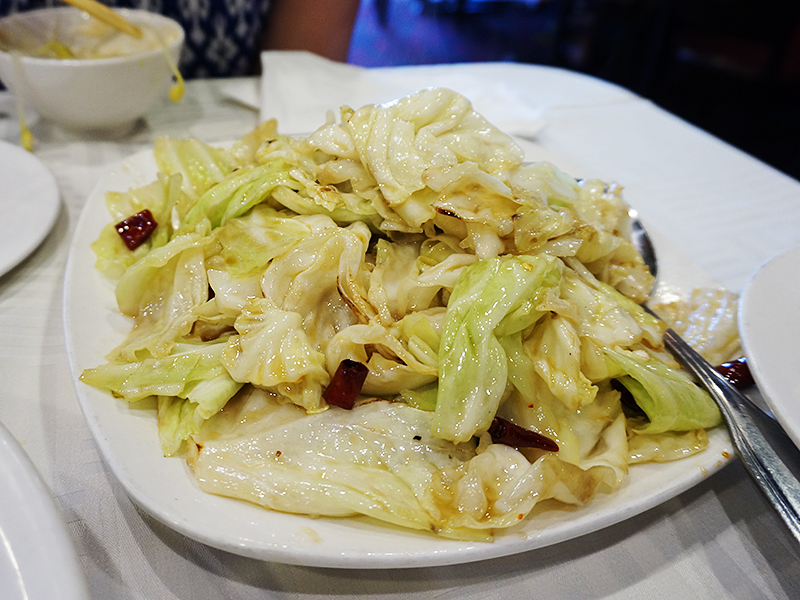 This was rather excellent and the kind of thing you might be at risk of passing over if you go to Sichuan restaurants and order only dishes that set off fireworks and fire alarms. Cabbage braised to just softening/still crunchy texture with very good sweet vinegar. Just a bit of heat from the dried chillies.