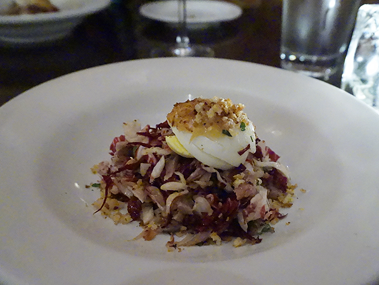 112 Eatery: duck & radicchio salad Published October 12, 2015, 21:22 at 750 × 563 in 112 Eatery…and Some Thoughts on La Belle Vie (Minneapolis) Next → duck & radicchio salad: This was our first time trying this and it was very good indeed. The crisp bitterness of the radicchio balanced nicely with the tart dressing and the thinly sliced grilled duck. Nice mix of textures too.