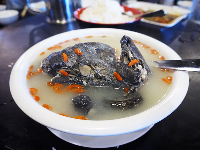 Grand Szechuan: Black Chicken in Broth Published November 3, 2015, 9:02 at 800 × 600 in Grand Szechuan, 2015 ← Previous Next → Maybe another hard sell on account of the black chicken (all of which is in the bowl)? Anyway, don’t let that deter you: it tastes just like regular chicken and the mild broth is wonderful. The orange things are wolfberries, we were told.