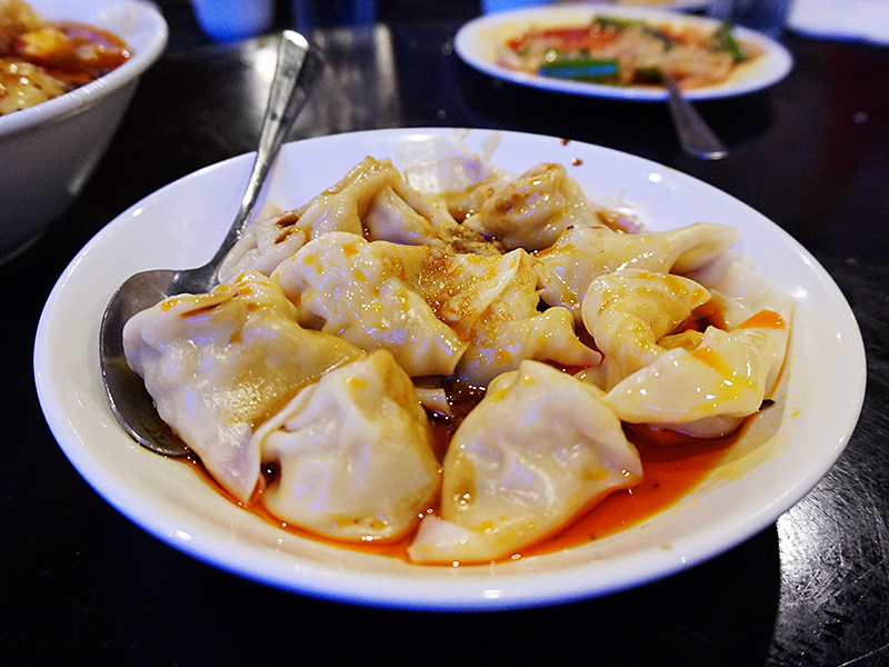 Grand Szechuan: Chengdu Spicy Wontons Published November 3, 2015, 9:04 at 800 × 600 in Grand Szechuan, 2015 ← Previous Next → I thought I’d start the slideshow with some more familiar items. Their wontons and dumplings in chilli oil are always reliable.