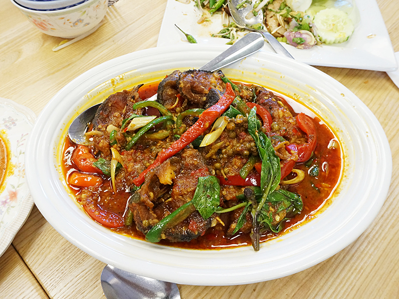 Bangkok Thai Deli: Stir-Fried Spicy Catfish Published November 9, 2015, 18:52 at 800 × 600 in Bangkok Thai Deli III ← Previous Next → This crispy spicy catfish may be the best thing we’ve eaten there of late, and was all but lethal when asked for Thai hot at our last outing.