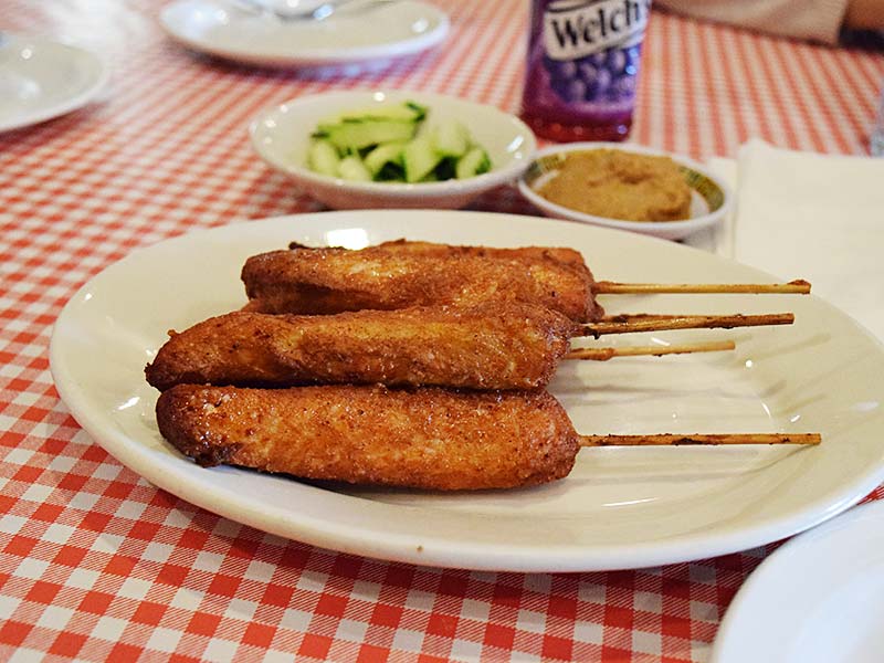 A Taste of Thai Yai: Chicken Satay Published December 21, 2015, 20:49 at 800 × 600 in Taste of Thai Yai (Apple Valley, MN) ← Previous Next → These were also for the kids and for the first time ever ours left chicken satay on the plate and weren’t very interested either in finishing the leftovers we brought home. As I said, these were somewhat chicken tender’ish: thick and crunchy.