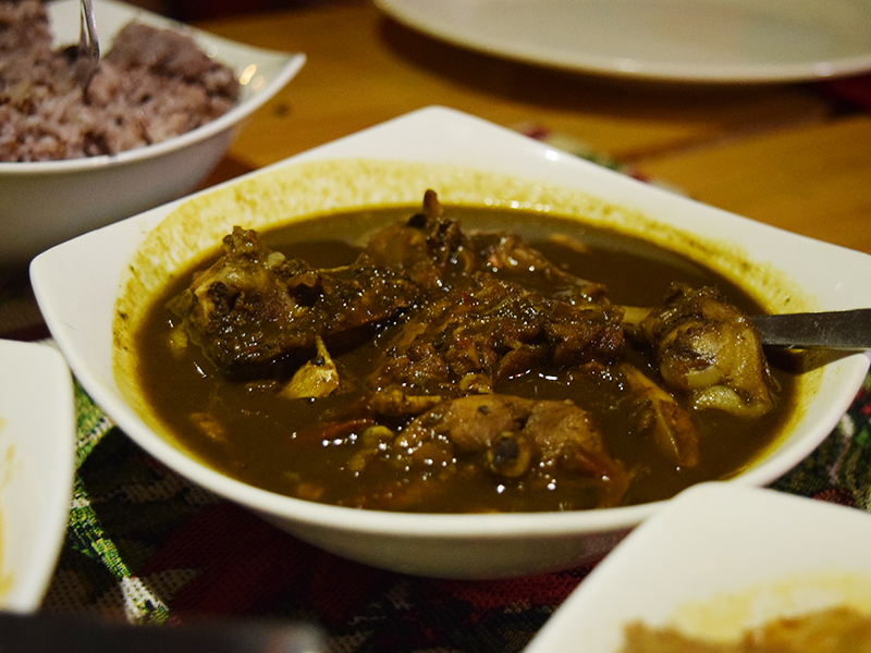 Dzükou: Chicken with Anishi Published January 14, 2016, 6:18 at 800 × 600 in Dzükou (Delhi, January 2016) ← Previous Next → I also knew I wanted to try something with anishi, a paste of smoked and dried yam leaves. Smoky and not cloying in the least, this would probably have been better with pork but I liked it very much as it was too.