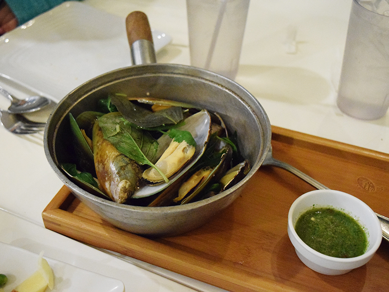 Lacha Somtum: Steamed Mussels Published January 16, 2016, 10:31 at 800 × 600 in Lacha Somtum (Los Angeles, 2015 & 2016) ← Previous Next → Lots of plump mussels and the dipping sauce was very good, and reminiscent of Indian cilantro-chilli chutney.