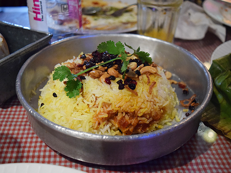 Sodabottleopenerwala: Chicken Berry Pulav Published January 19, 2016, 22:17 at 800 × 600 in Sodabottleopenerwala (Gurgaon, January 2016) ← Previous Next → This is an iconic dish at the iconic Irani restaurant, Britannia in Bombay, and you’re more likely to like Sodabottleopenerwala’s version if you haven’t eaten the “original”. All the ingredients are here but it doesn’t add up.