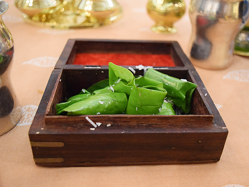 Dakshin: Paan Published January 24, 2016, 9:29 at 800 × 600 in Dakshin (Delhi, January 2016) ← Previous Next → Paan was served with the check. None of us care for paan but it made a nice photograph.