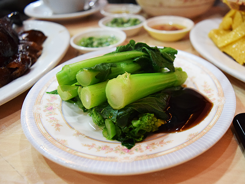 Yat Lok: Greens with Oyster Sauce Published February 10, 2016, 22:58 at 800 × 600 in Roast Goose at Yat Lok (Hong Kong, Jan 2016) ← Previous You need something to cut the fat of the birds.