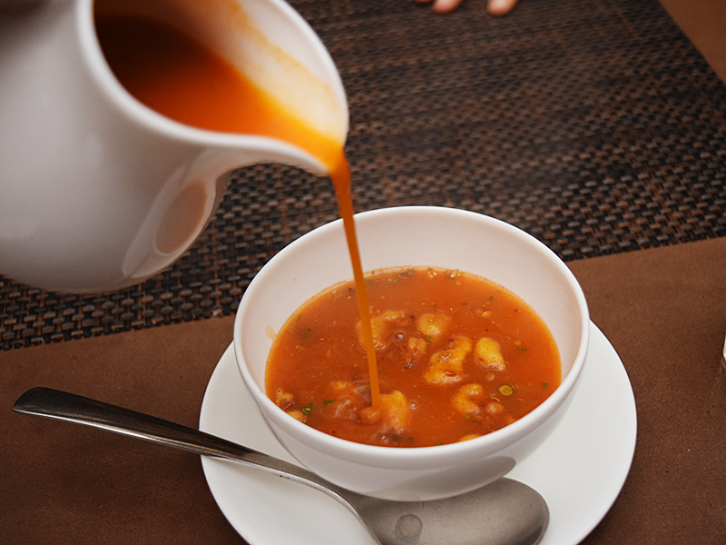 Cafe Lota: Lal Gajar ka Soup Published February 15, 2016, 21:09 at 800 × 600 in Café Lota, Two Years Later (Delhi, January 2016) ← Previous Next → Over which the soup is poured.