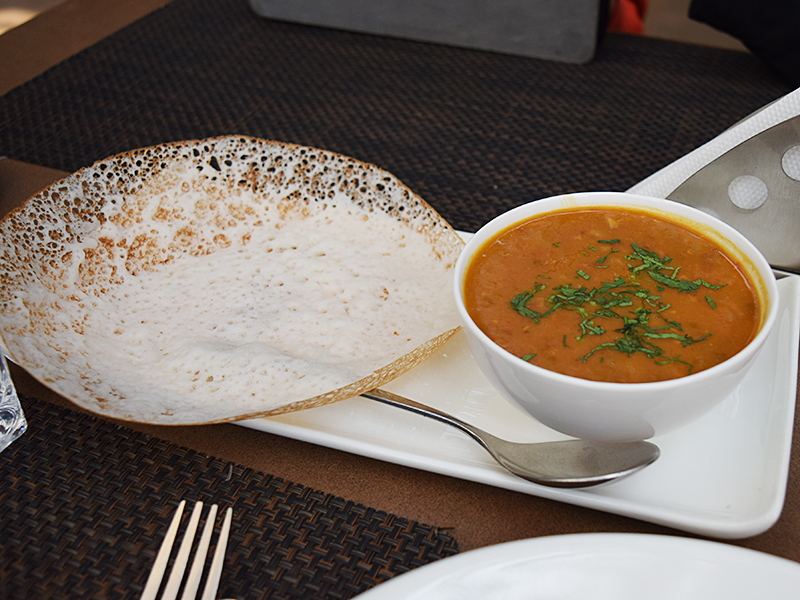 Cafe Lota: Aaj ki Dal Published February 15, 2016, 21:08 at 800 × 600 in Café Lota, Two Years Later (Delhi, January 2016) ← Previous Next → “Aaj ki dal”/Dal of the day on the day was a moth dal, I believe. It was quite good. It’s not served with an appam—we just happened to order an extra appam when we ordered the dal.
