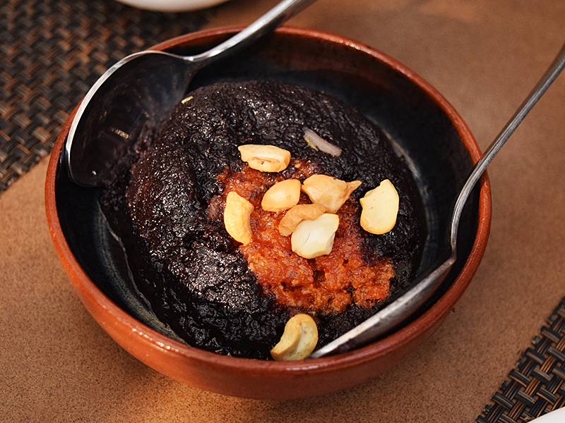 Cafe Lota: Do Gajar ka Halwa Published February 15, 2016, 21:08 at 800 × 600 in Café Lota, Two Years Later (Delhi, January 2016) ← Previous Next → The black carrot halwa forms a casing around a larger core of regulation red carrot halwa—a striking presentation.
