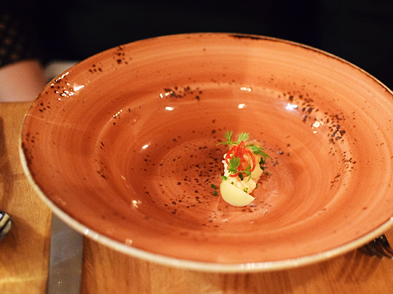 Piccolo: Shrimp bisque with fingerling potatoes and fresno peppers Published March 5, 2016, 11:20 at 800 × 600 in Piccolo VI & Some Complaining about the James Beard Awards ← Previous Next → Pre-bisque addition.