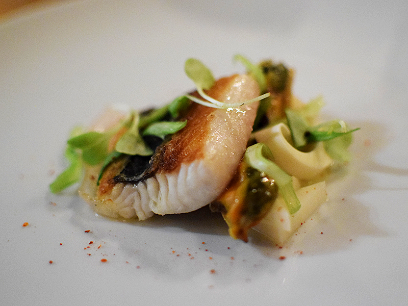 Piccolo: Spanish mackerel with pickled hearts of palm, guanciale, smoked mussels, and lovage Published March 5, 2016, 11:20 at 800 × 600 in Piccolo VI & Some Complaining about the James Beard Awards ← Previous Next → Spanish mackerel with pickled hearts of palm, guanciale, smoked mussels, and lovage