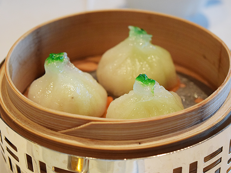 Lung King Heen: Steamed Seafood Dumplings Published March 29, 2016, 21:52 at 800 × 600 in Lung King Heen (Hong Kong, Jan 2016) ← Previous Next → I’m spacing now on what the little green tips were.