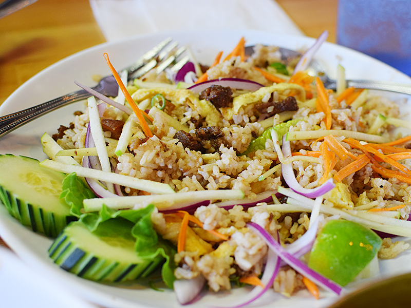 Luv2Eat: Shrimp Paste Fried Rice Published August 2, 2016, 0:14 at 800 × 600 in Luv2Eat Thai Bistro, Take 2 (Los Angeles, July 2016) ← Previous Next → All mixed up.