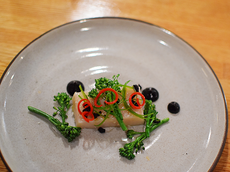 Piccolo: Olive oil poached swordfish belly with black olive, broccolini, and fresno peppers Published August 16, 2016, 0:36 at 800 × 600 in Piccolo VII ← Previous Next →