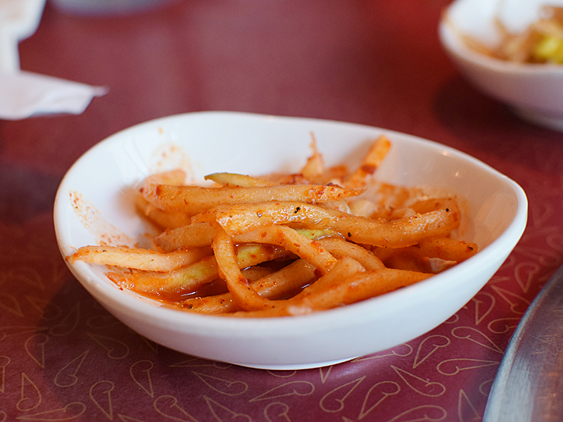 Ham Ji Park: Banchan Published October 18, 2016, 13:12 at 800 × 600 in Ham Ji Park (Los Angeles) ← Previous Next → Radish strips.