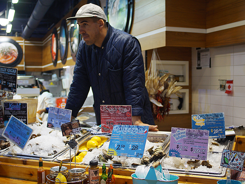 But back to the main event. There are a bewildering variety of oysters available. You can ask for them in any combination you want but it’s best to put yourself in the hands of this gent (or whoever is working the counter when you visit) and ask for a dozen of a range of types. He will ask if you have particular preferences (sweet/briny, large/small etc.) and then he will give you an excellent oyster omakase of sorts.