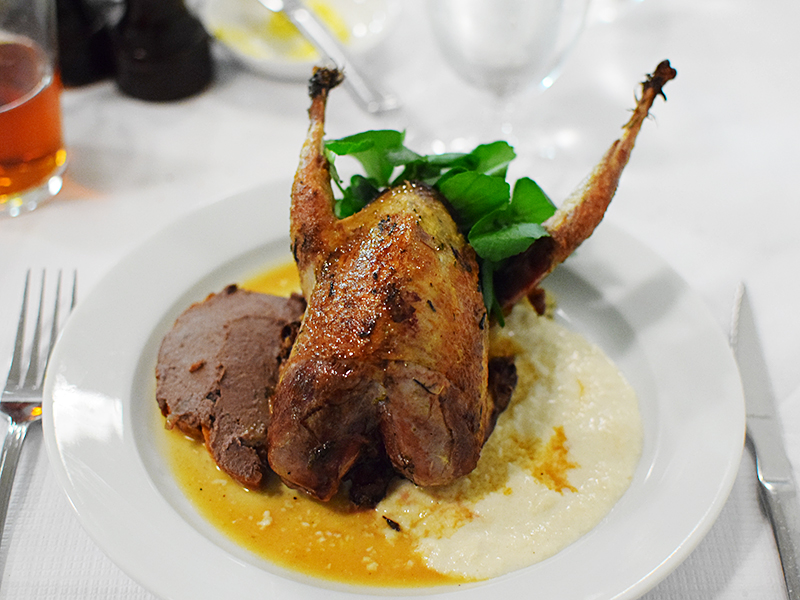 St. John: Grouse Published December 13, 2016, 20:54 at 800 × 600 in St. John (London) ← Previous Next → No complaints about the grouse though, served with its liver on toast, watercress coming out of its rear end, and bread sauce.