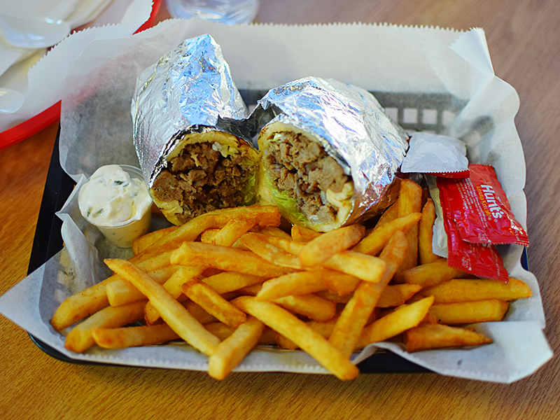 Nawal: Gyro with Fries Published January 30, 2017, 22:33 at 800 × 600 in Nawal (Burnsville, MN) ← Previous Next → The gyro comes in various incarnations. Here in a pita roll with fries.