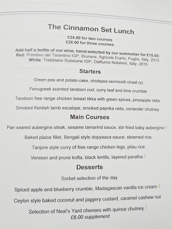 The Cinnamon Club: Set lunch menu Published April 10, 2017, 12:11 at 600 × 800 in The Cinnamon Club (London) ← Previous Next →