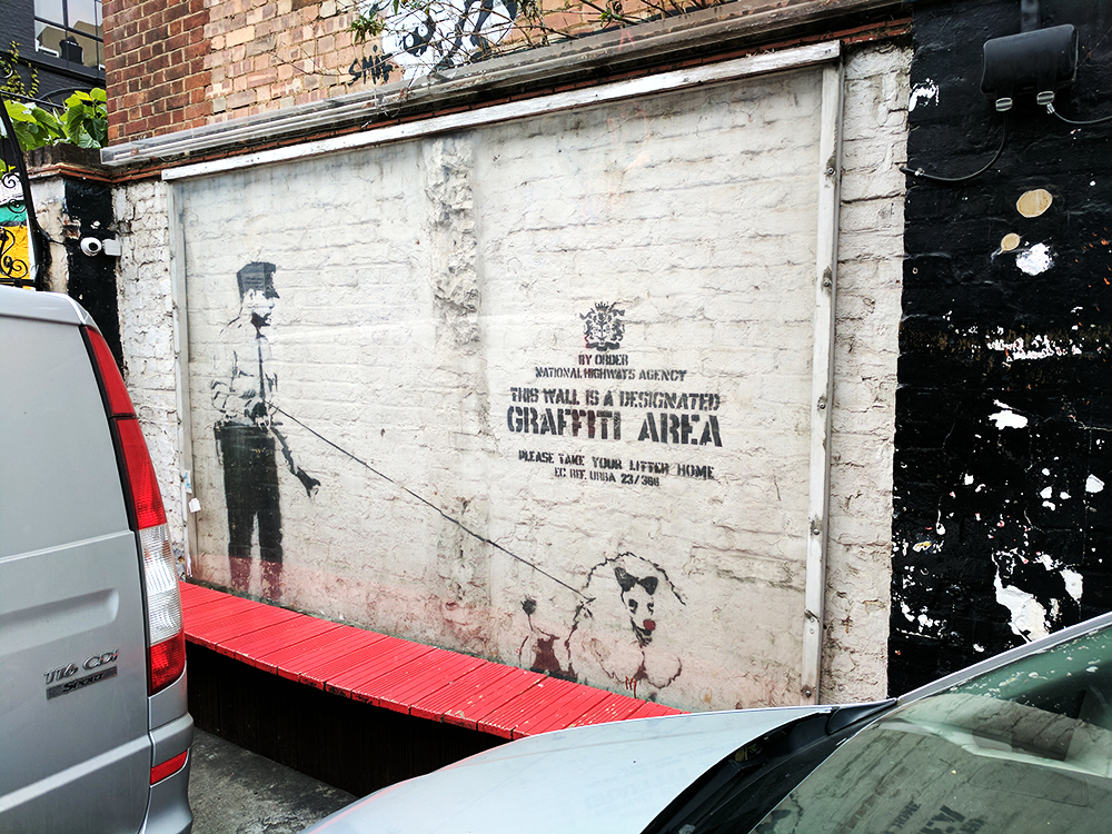 Street Art: “Guard Dog” by Banksy Published May 9, 2017, 12:23 at 1000 × 750 in Street Art in East London ← Previous Next → This, however, is by Banksy. In the Cargo Club courtyard.