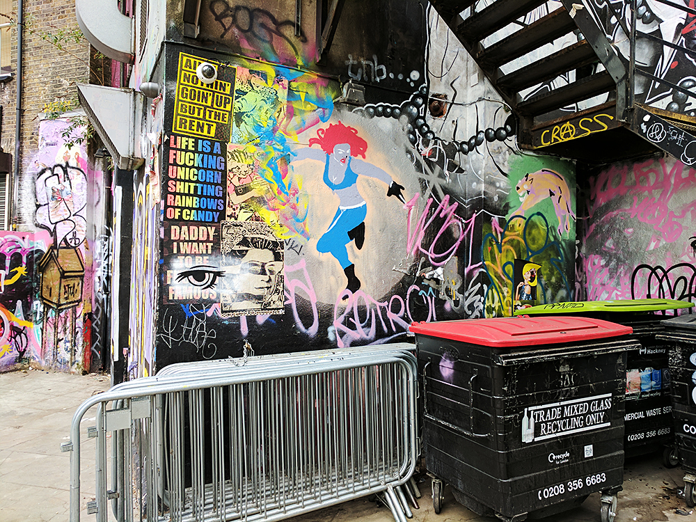 Street Art: Ain’t Nothin’ Goin’ Up But The Rent Published May 9, 2017, 12:27 at 1000 × 750 in Street Art in East London ← Previous Next → A bunch of pieces by some trashcans.