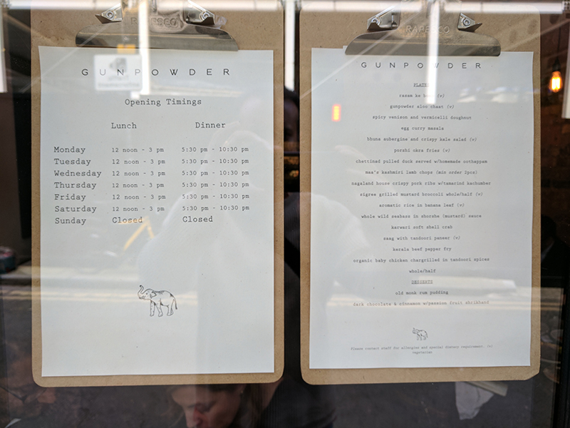 Gunpowder: Menu