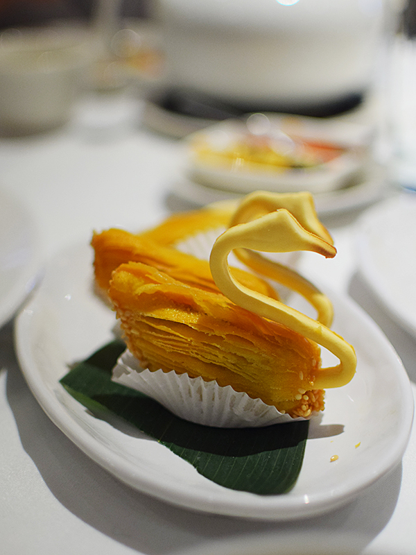 Royal China: Duck Pastry Published May 24, 2017, 6:34 at 600 × 800 in Dim Sum at Royal China, Baker Street (London) ← Previous Next → The flaky pastry contains duck even though it’s shaped like a swan. Tasty but not as good as it looks.