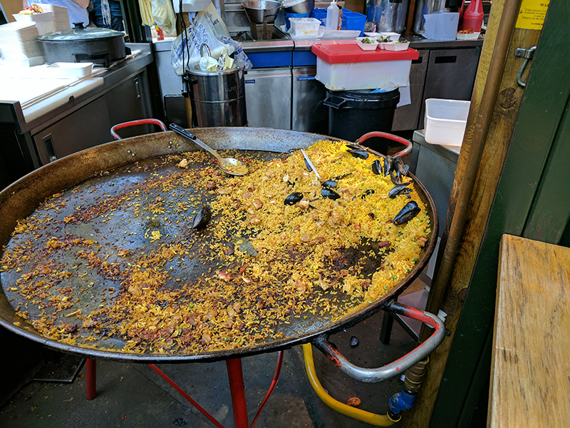 Borough Market: Paella Published May 27, 2017, 4:03 at 800 × 600 in Borough Market: Eating (London) ← Previous Next → When we got there the second time the paella was down to the last bits—it looked good to us, actually, but they insisted we wait for a fresh batch.