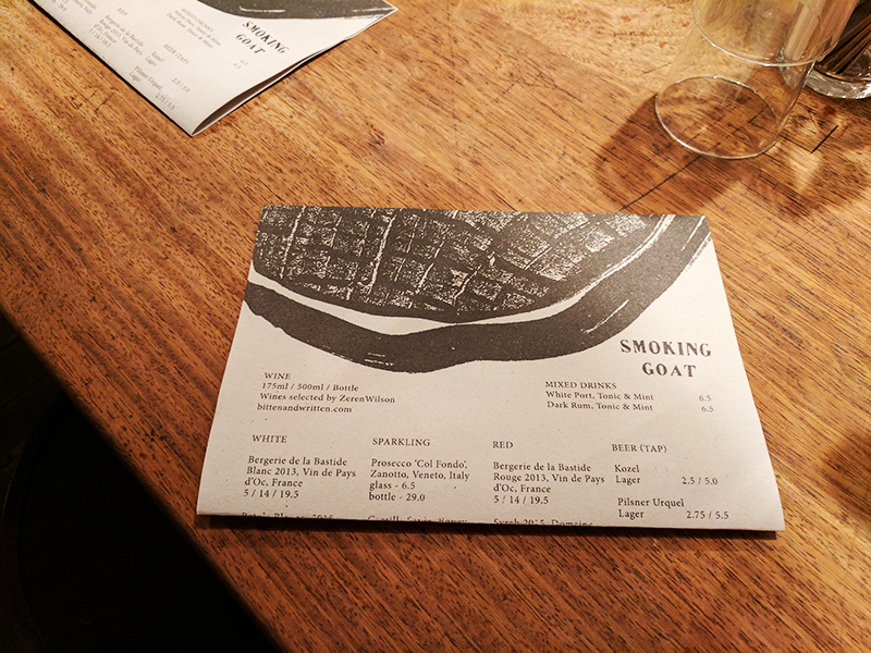 Smoking Goat: Drinks Published May 29, 2017, 14:21 at 800 × 600 in Smoking Goat (London) ← Previous Next → There’s also wine and beer.