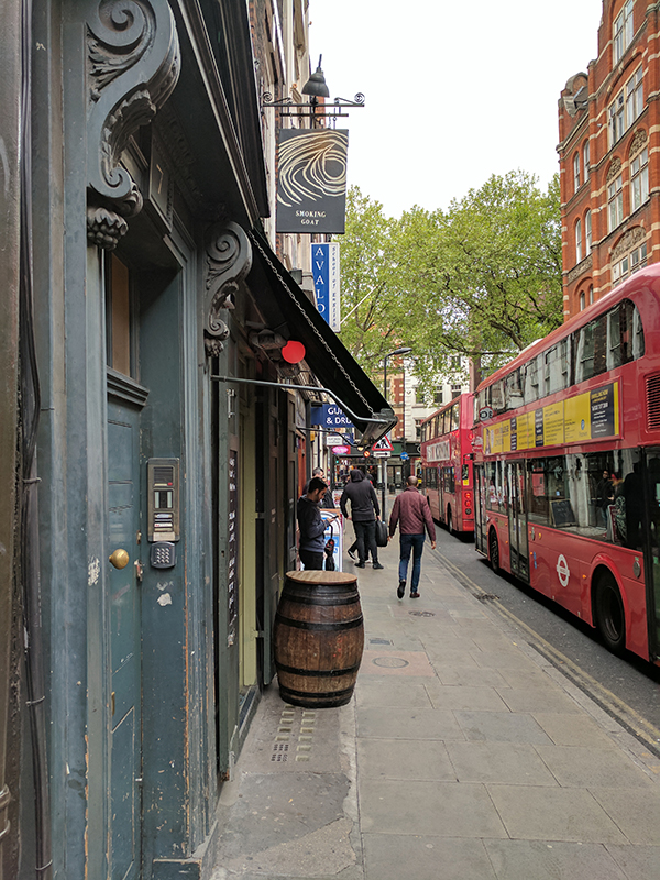 Smoking Goat: Exterior Published May 29, 2017, 14:21 at 600 × 800 in Smoking Goat (London) ← Previous Next → An unassuming entrance on Denmark St. among the music shops.