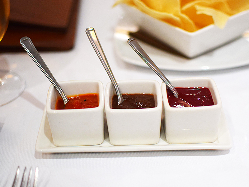 Tamarind: Chutneys Published June 3, 2017, 11:55 at 800 × 600 in Tamarind (London) ← Previous Next → Tamarind, tomato and beetroot (if I remember correctly). All very good.