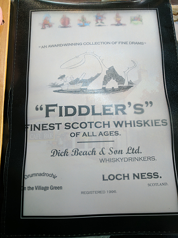 Fiddler’s: The long whisky list Published July 5, 2017, 23:00 at 600 × 800 in Eating (and Drinking) in the Highlands (Scotland, Summer 2017) ← Previous Next → This had to be brought over from the restaurant bar when I asked for it.