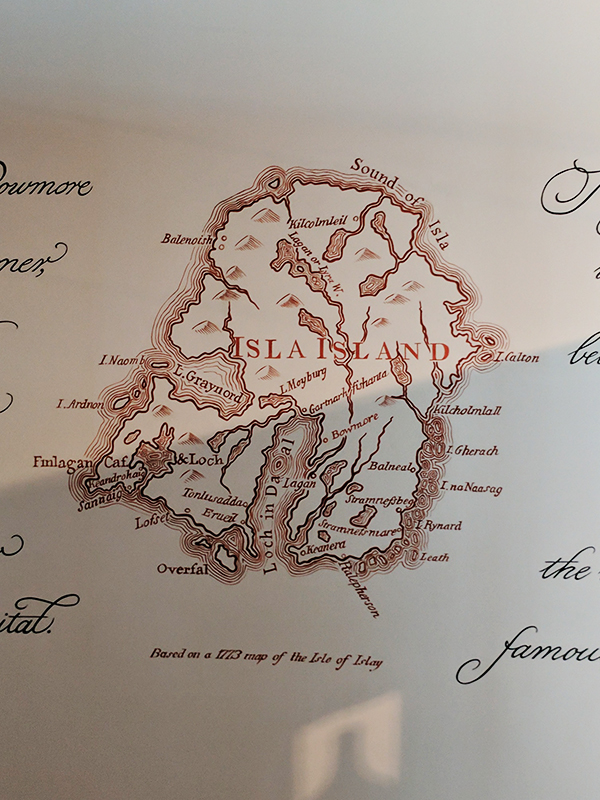 Bowmore: Map Published July 18, 2017, 21:53 at 600 × 800 in At Bowmore, Pt. 1 (Summer 2017) Next → There’re a lot of impressive whisky bottles here but I was most taken by this replica of an old map of Islay (from 1773).