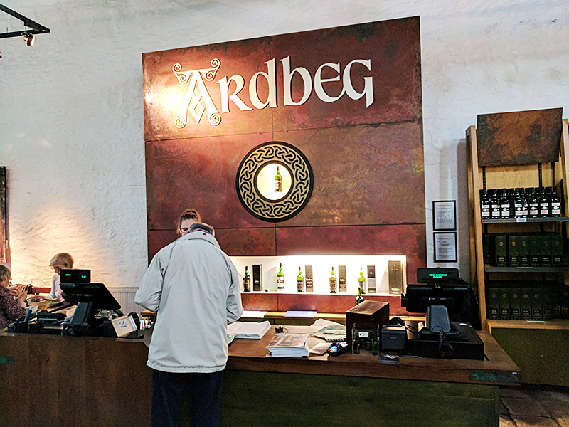 Ardbeg: Cashier Published July 25, 2017, 17:09 at 800 × 600 in At Ardbeg, Pt. 1 (Summer 2017) ← Previous Next → The cashier’s desk takes payments for purchases and meals, alike.