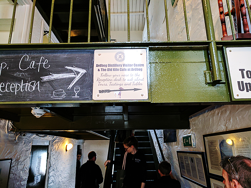 Ardbeg: Follow your nose Published July 25, 2017, 17:09 at 800 × 600 in At Ardbeg, Pt. 1 (Summer 2017) ← Previous Next → There’s a bar to the left with spillover cafe seating; toilets upstairs; cafe and shop to the right.