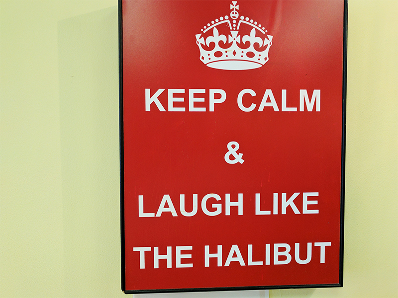 The Laughing Halibut: Keep calm Published August 10, 2017, 22:21 at 800 × 600 in Fish and Chips at the Laughing Halibut (London) ← Previous Next → Unfortunately, this is also on the wall.