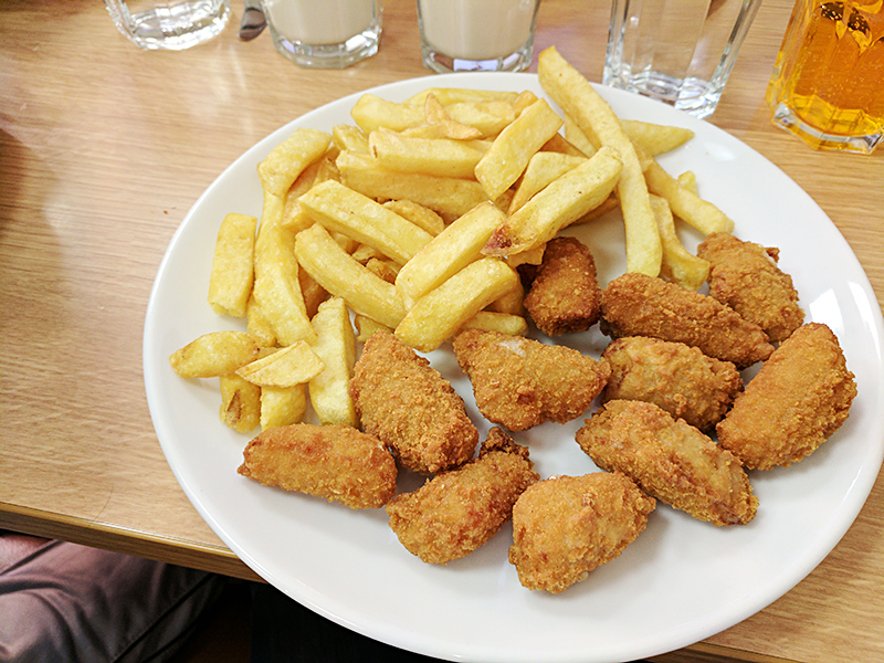The Laughing Halibut: Scampi Published August 10, 2017, 22:22 at 800 × 600 in Fish and Chips at the Laughing Halibut (London) ← Previous Next → And I was not crazy about the scampi. Lots of batter with a tiny shrimp inside.