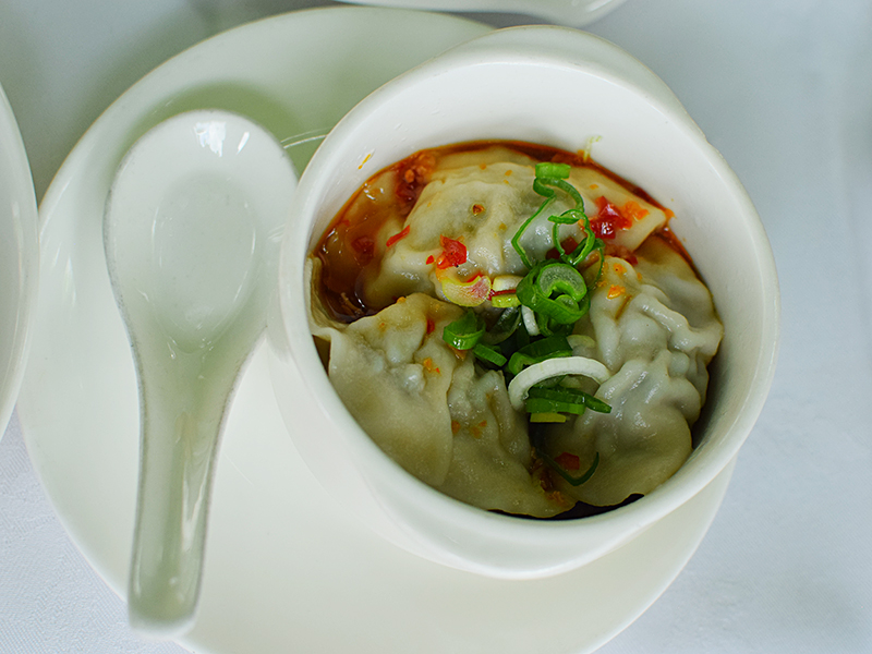 Royal China, Canary Wharf: Minced pork and chive dumpling in chilli oil Published August 22, 2017, 22:03 at 800 × 600 in Dim Sum at Royal China, Canary Wharf (London) ← Previous Next → A nod to Sichuan.