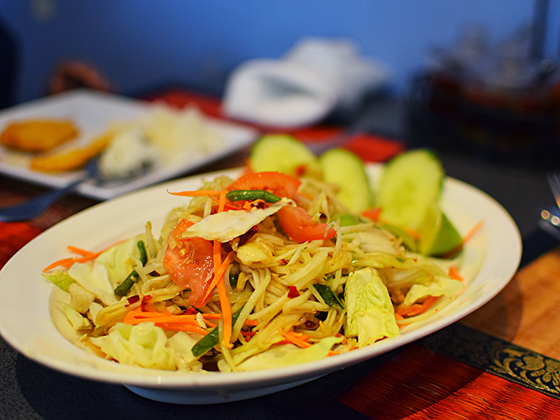 Joy’s Pattaya Thai: Somtum Published October 9, 2017, 22:15 at 800 × 600 in Joy’s Pattaya Thai (Richfield, MN) ← Previous Next → Quite good—a bit more fish sauce than we expect in Thai versions.